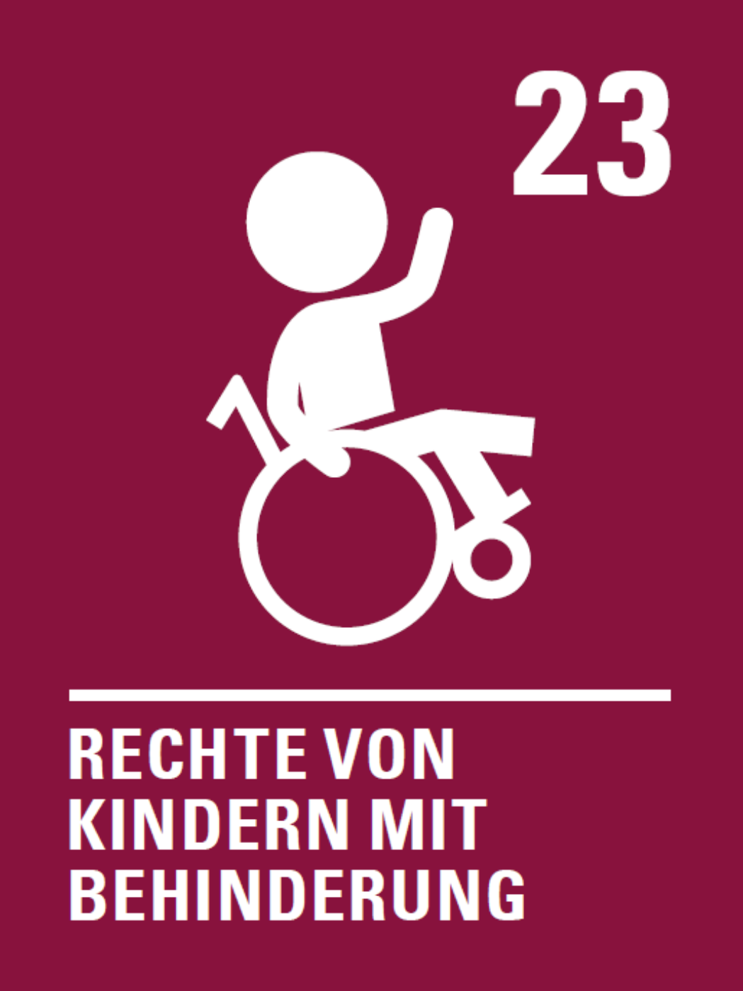 Kinder und Jugendliche mit einer Behinderung haben das Recht auf besondere Unterstützung, Erziehung und Bildung, damit sie so gut wie möglich am Gemeinschaftsleben mit anderen Kindern teilnehmen können.